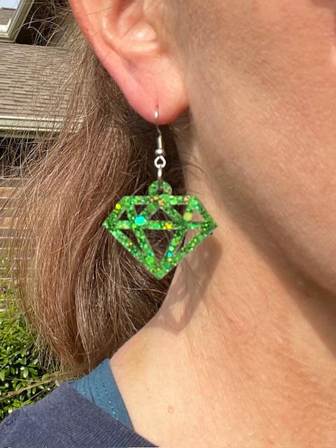 Gem-Shaped lightweight glitter resin earrings - Diamond, Ruby, Sapphire, Emerald