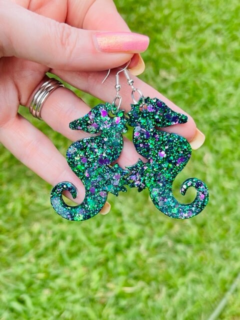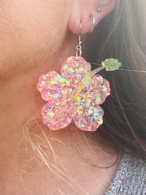 Sparkly Daisy glitter resin earrings - handcrafted - handmade jewelry