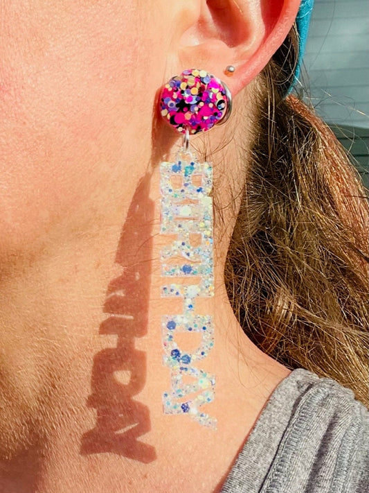 Birthday Bitch glitter resin earrings - choose your colors - handmade jewelry
