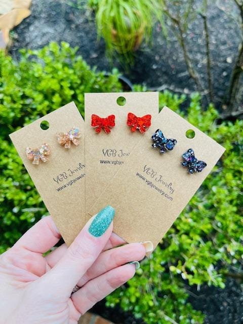 Bow stud earrings - Multiple colors available - Glitter resin handmade jewelry
