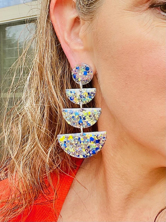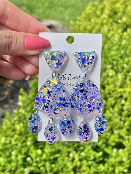 Blue & White Glitter Resin Statement Earrings | Lightweight Statement Dangles