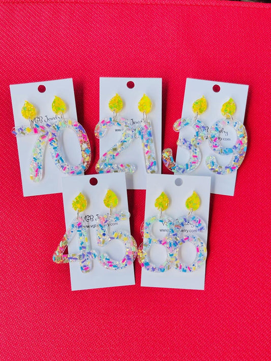 Birthday Girl glitter resin earrings - choose your colors - handmade jewelry