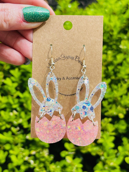 Easter bunny & egg dangle earrings - glitter resin earrings