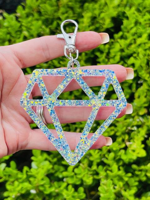 Diamond, Sapphire, Emerald or Ruby glitter resin keychain/bag charm-Pearland Dawson Diamonds drill team-CFHS Emeralds - Dickinson Diamonds