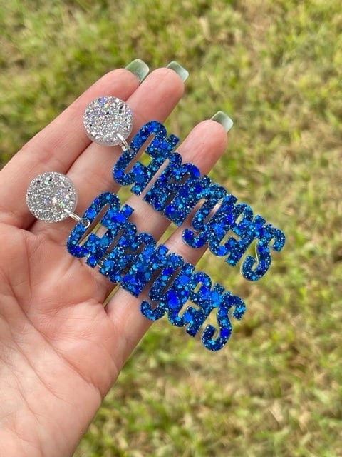 Whether you're cheering on your team from the stands or watching from home, these earrings let everyone know you're a dedicated Chargers fan. Choose your favorite glitter color to match your team's colors or express your personal style. With these Chargers earrings, you'll be ready to support your team and shine bright on game day!