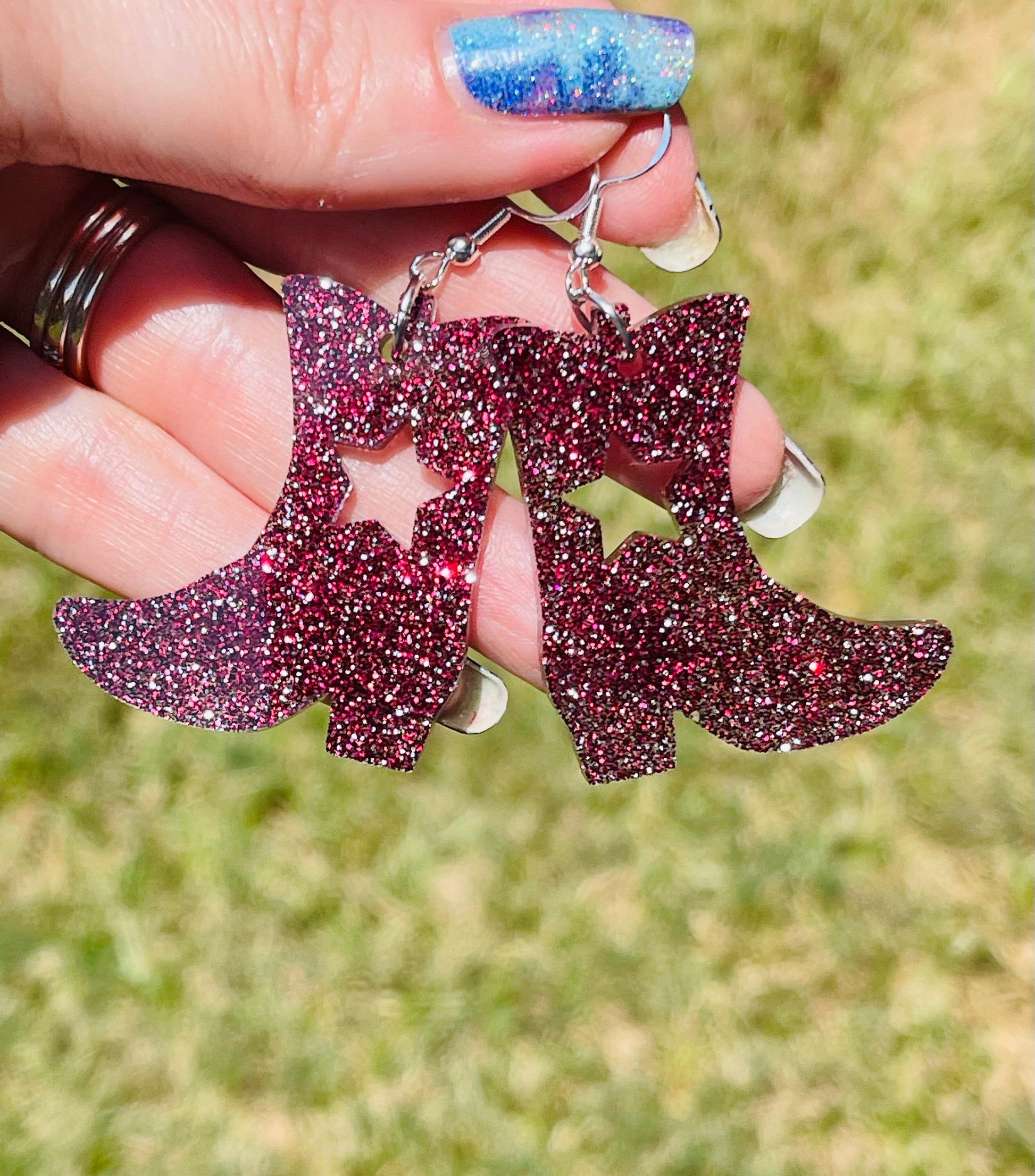 Step up your style game with these fabulous drill team boot earrings! Crafted with lightweight resin and sparkling glitter, these earrings feature a charming star cutout that adds an extra touch of flair. Perfect for drill team members and dance moms alike, they’re a fun and stylish way to show your support and enthusiasm. Whether you’re at a performance or just out and about, these earrings are sure to make a statement!