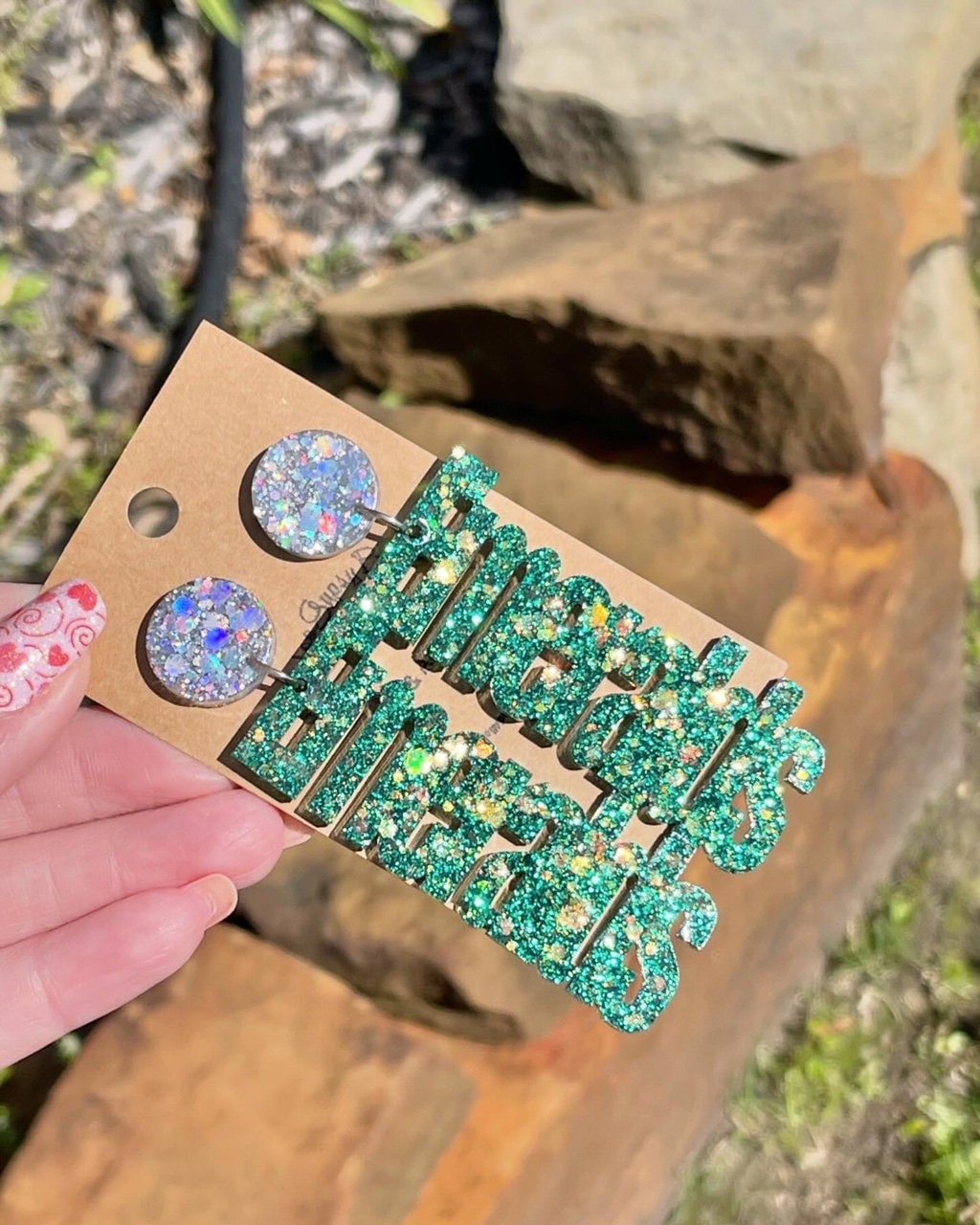 Add some sparkle to your game day look with these lightweight Emeralds earrings! Crafted with glitter and resin, they’re perfect for showing off your support. Whether you're cheering on the Clear Falls Emeralds Drill Team or any other team with the same vibrant name, these earrings will make sure you stand out in style. Perfect for adding a bit of glitz to your team spirit!