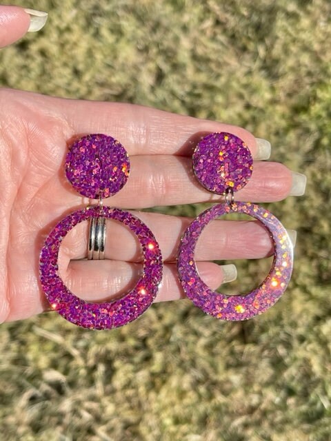 These beautiful sparkly earrings are hand-crafted by me from resin, and are very light-weight. Custom colors are available - shoot me a message & we'll get it done!