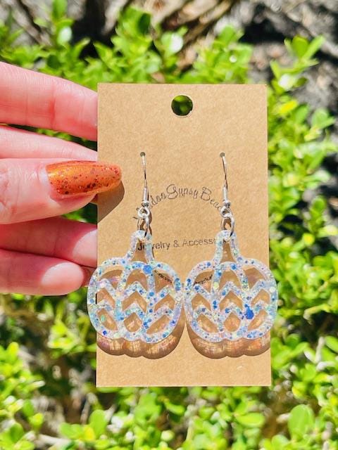 Glitter resin Chevron pumpkin earrings - multiple colors - resin earrings - handcrafted - handmade jewelry