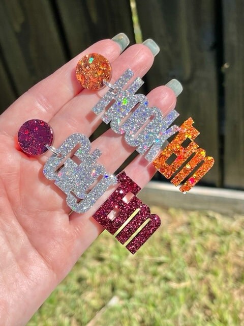 Hook ‘em/Gig ‘em glitter resin Earrings - House Divided - UT earring - A&M earring - handmade jewelry