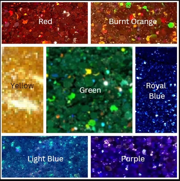 Resin earrings are made with a 2-part resin and glitter or dye, and attached to stainless steel, hypoallergenic posts and hooks.