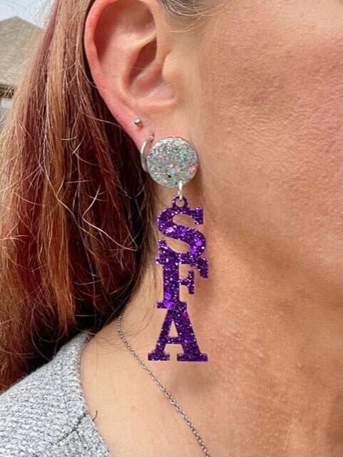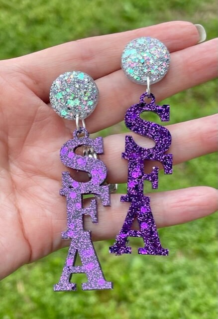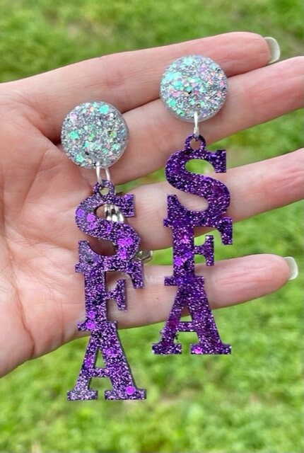 Purple SFA glitter resin earrings - purse charm, bag charm