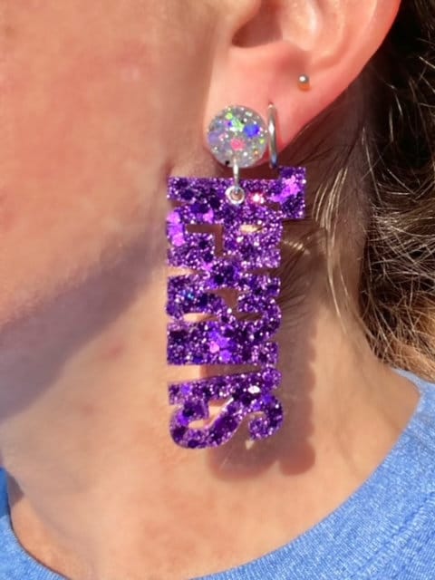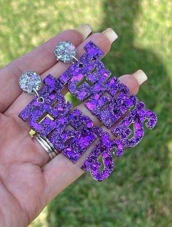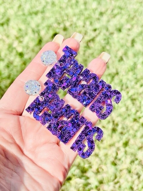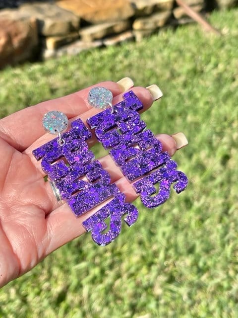 These beautiful sparkly earrings are hand-crafted by me from resin. These earrings are medium-large in size, but very light-weight. Great for representing your favorite team!