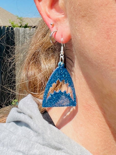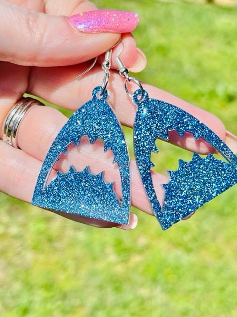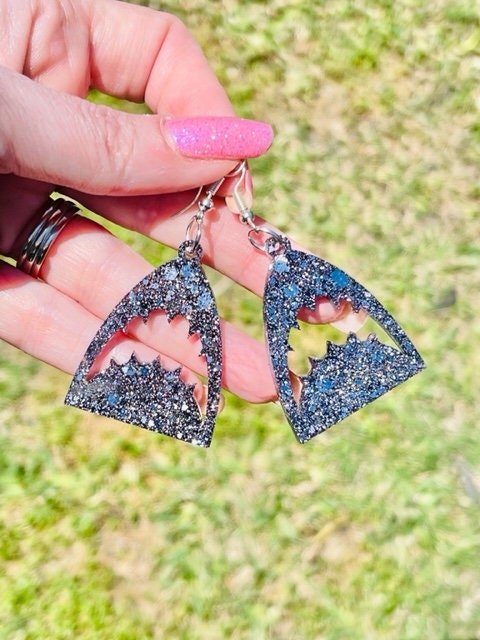 These beautiful sparkly earrings are hand-crafted by me from resin. These earrings are medium-large in size, but very light-weight. Great for shark week/water/boat/jaws lovers!
