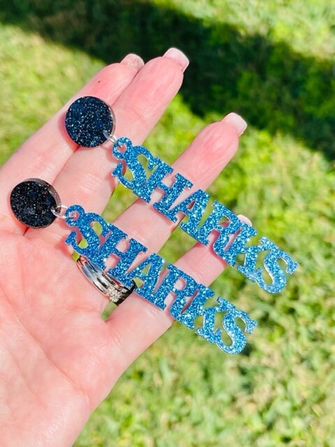 These beautiful sparkly earrings are hand-crafted by me from resin. These earrings are medium-large in size, but very light-weight. Great for representing your favorite team!