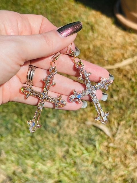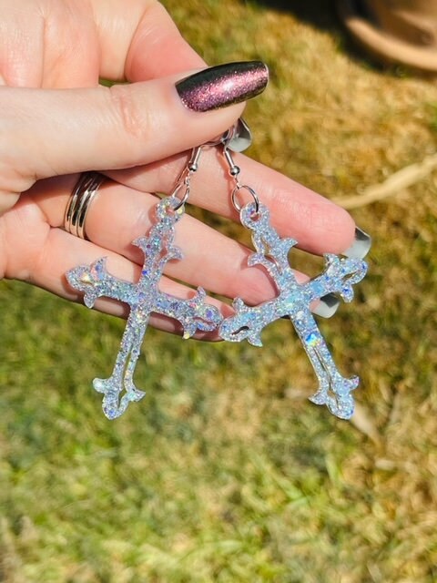 Ornate Cross glitter resin earrings