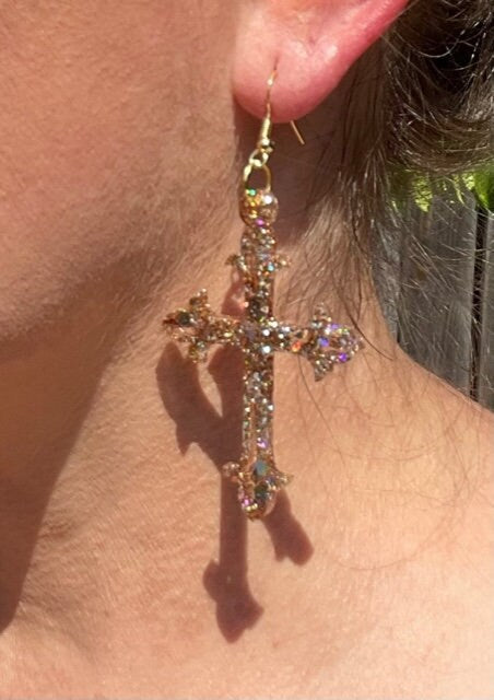 Choose from pierced or clip-on styles for a fit that works best for you. Whether you're dressing up for a special event or simply want to elevate your everyday style, these cross earrings bring a touch of grace and sophistication to any outfit. Stand out with these stunning glittering cross earrings!