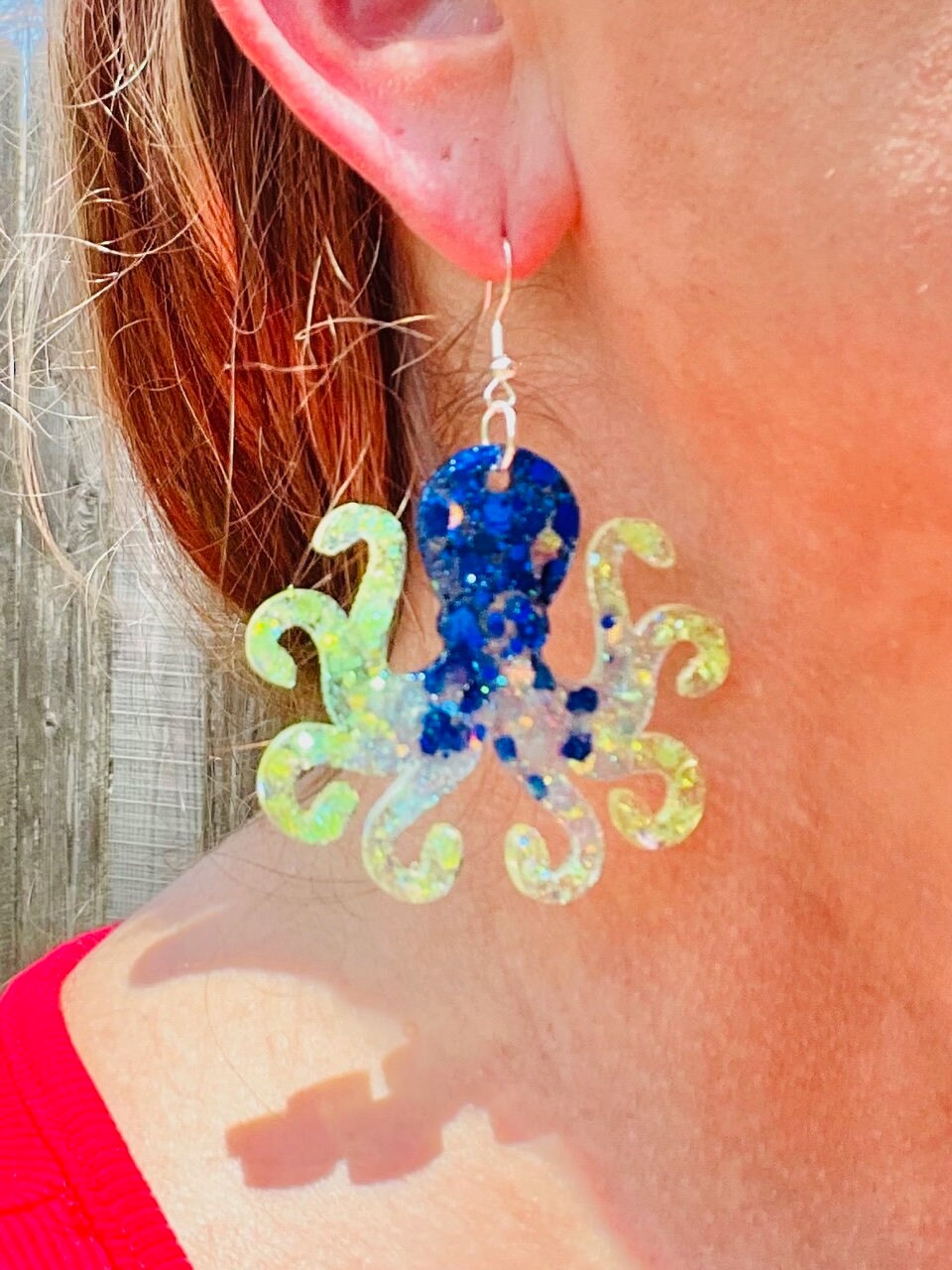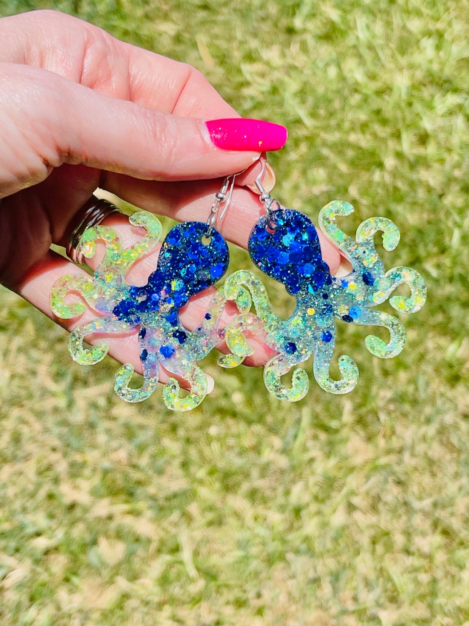 These beautiful sparkly earrings are hand-crafted by me from resin. These earrings are very light-weight. Great for a beachy vaca or themed event!