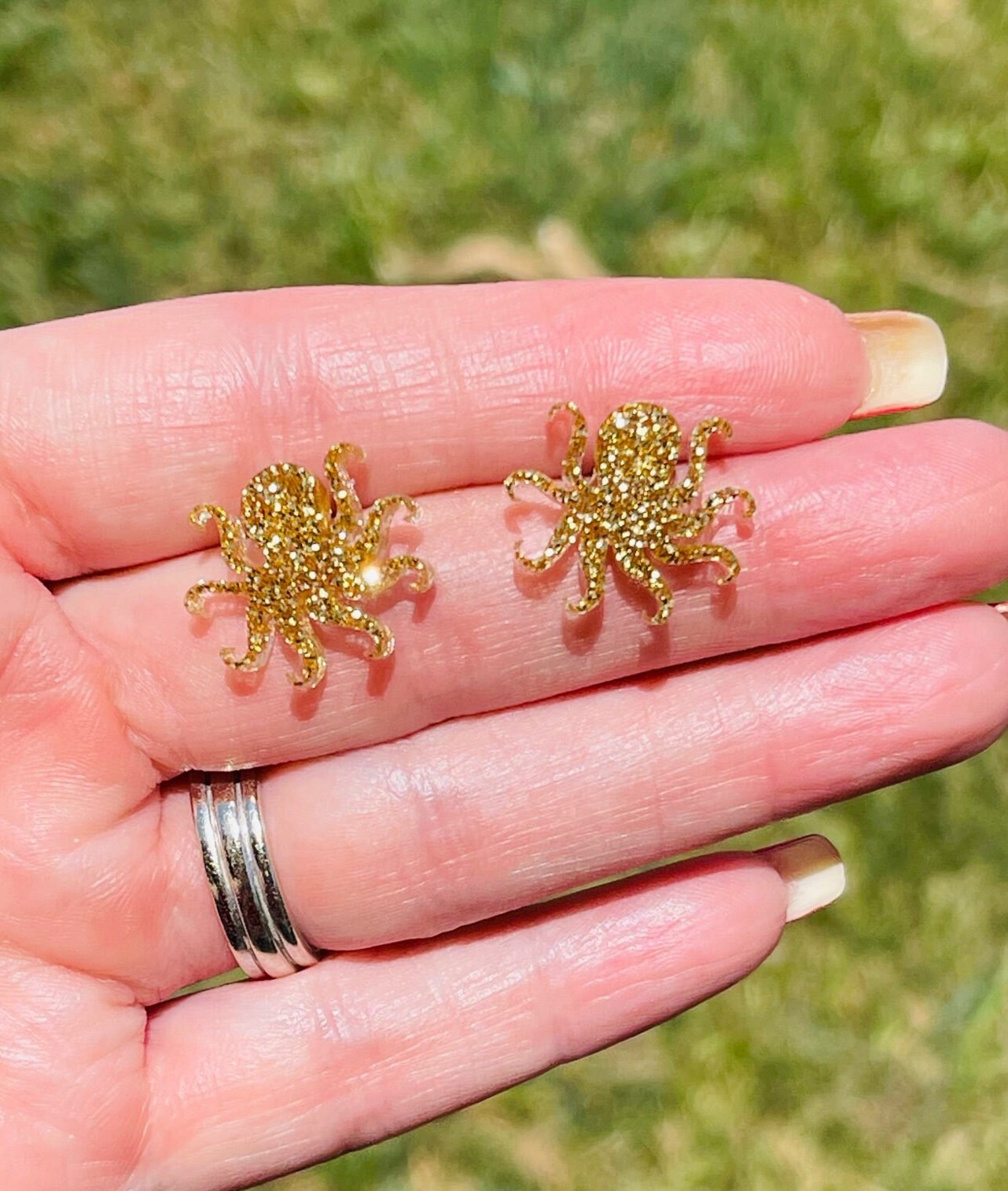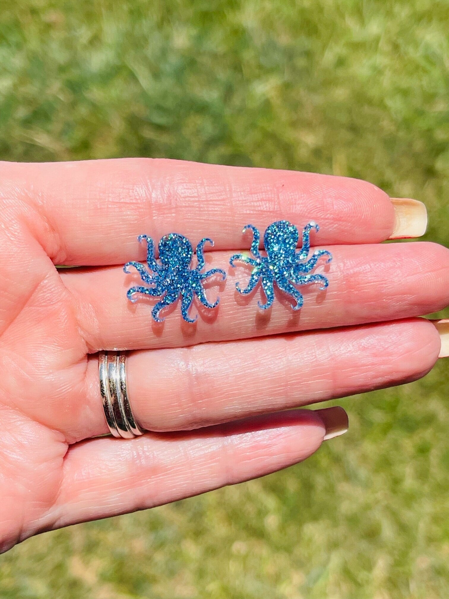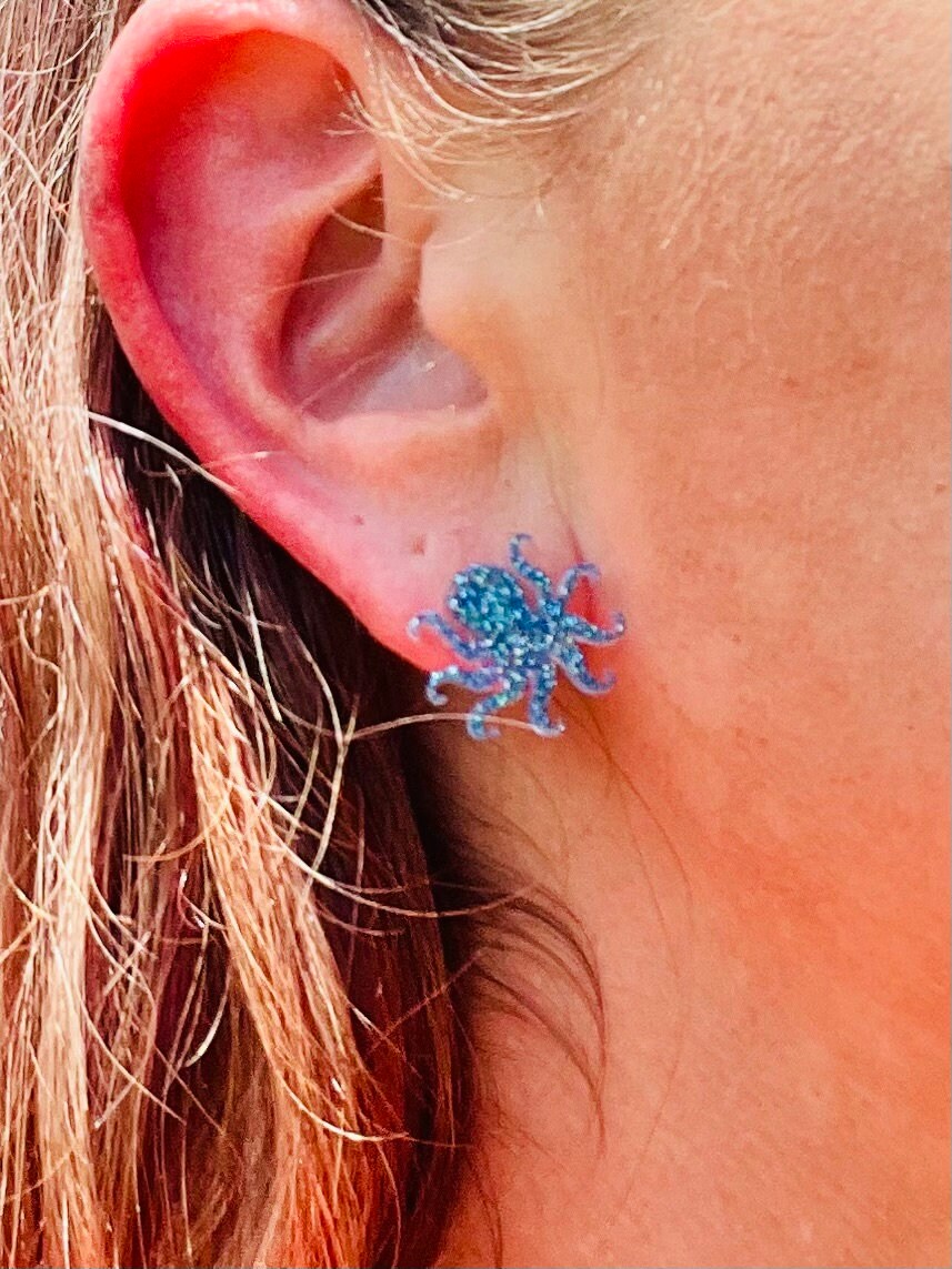 Sparkly Octopus glitter resin stud earrings