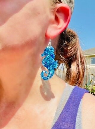 These beautiful sparkly earrings are hand-crafted by me from resin. These dainty earrings are very light-weight. Great for a beachy vaca or themed event!