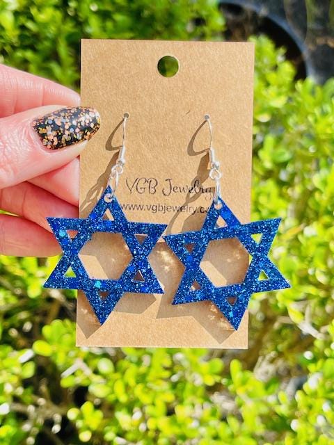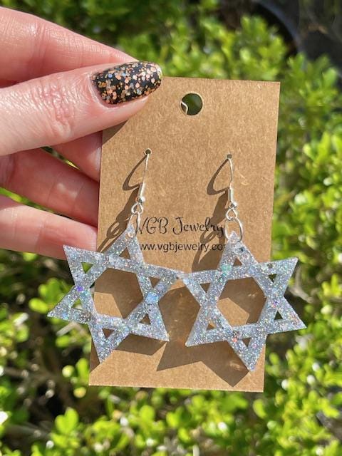 Sparkly Star of David earrings - handmade jewelry glitter resin earrings