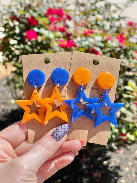 Star dangle resin earring - Game day earrings - handmade jewelry - gift for her