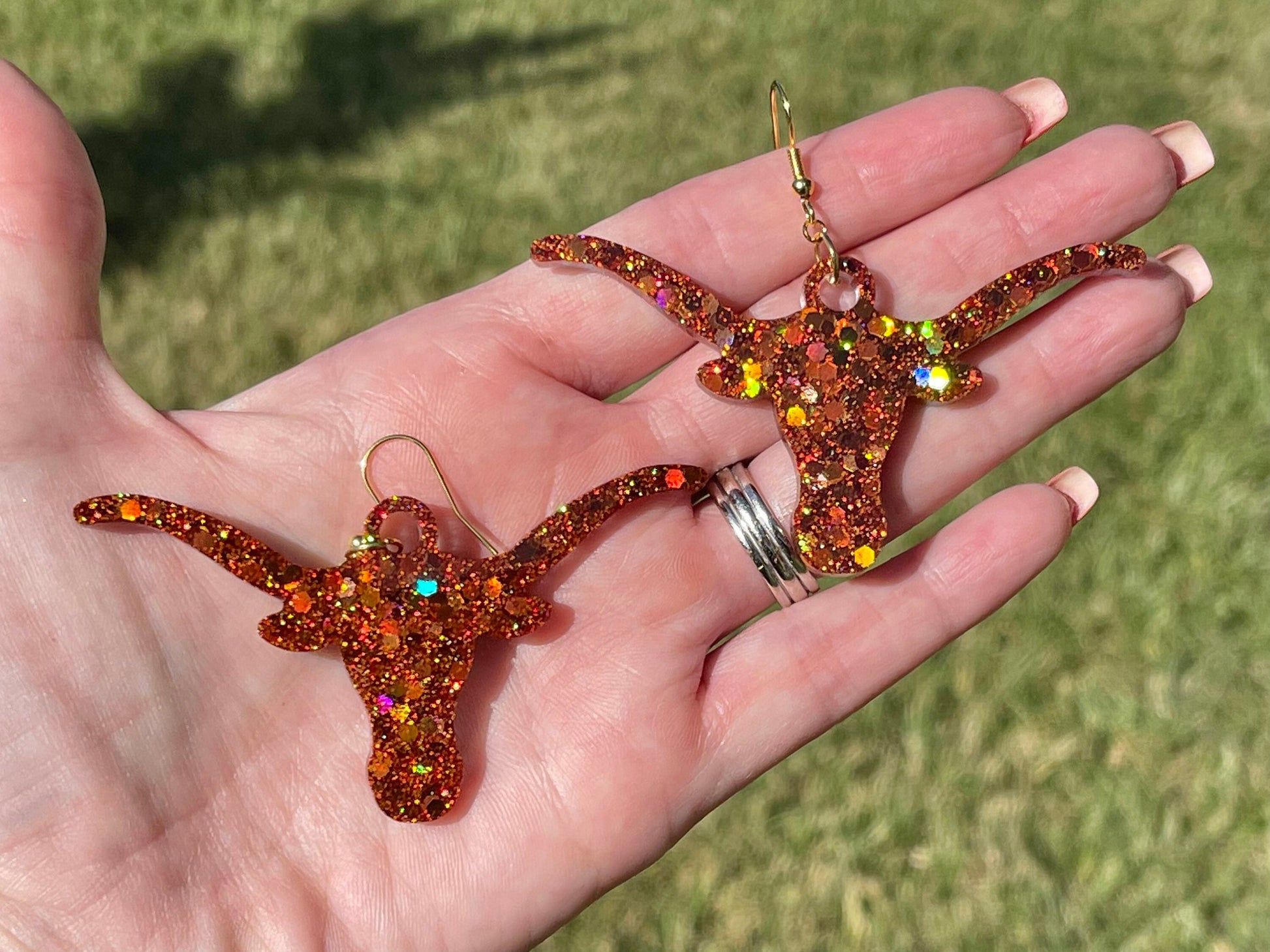 Texas Longhorn earring - Game day glitter resin earrings - handcrafted - handmade jewelry