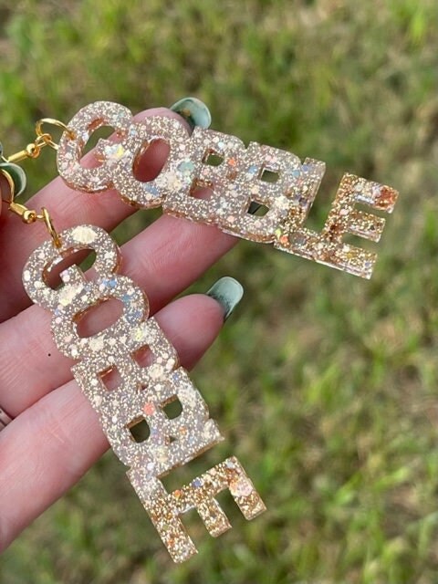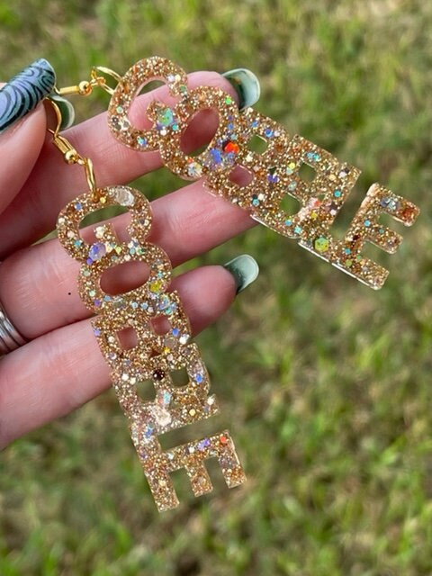 Alter Ego glitter resin word earrings
